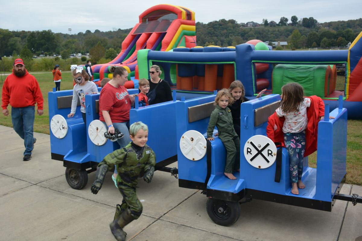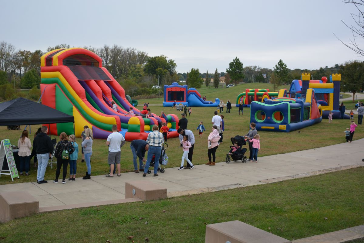 Okt. Kinder spielen in der Kids Zone beim Clarksville October Fest am 23. 2021. (Lee Erwin)