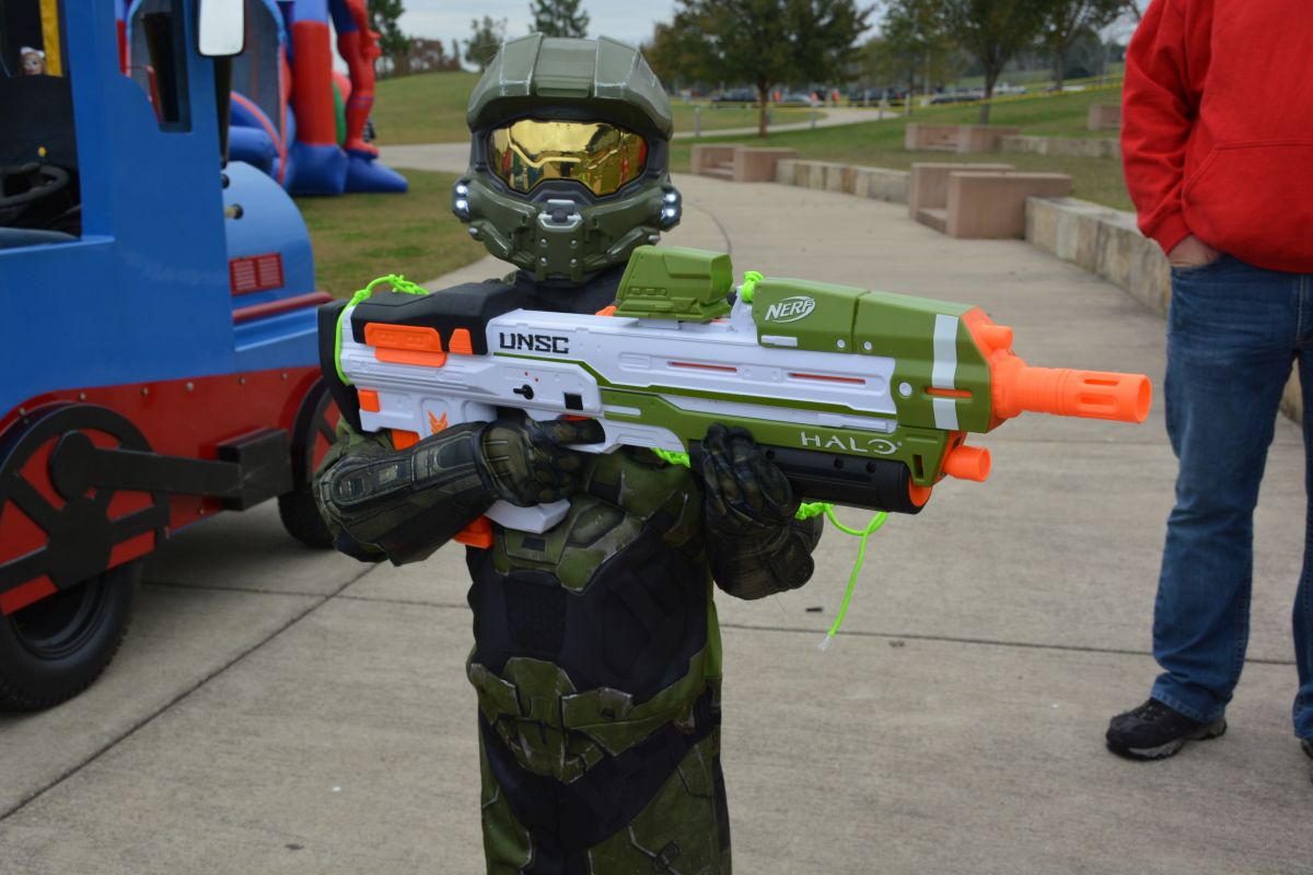 Ein junger Mann spielt in der Kids Zone beim OctoberFest in Clarksville, 23. Oktober 2021. (Lee Erwin)