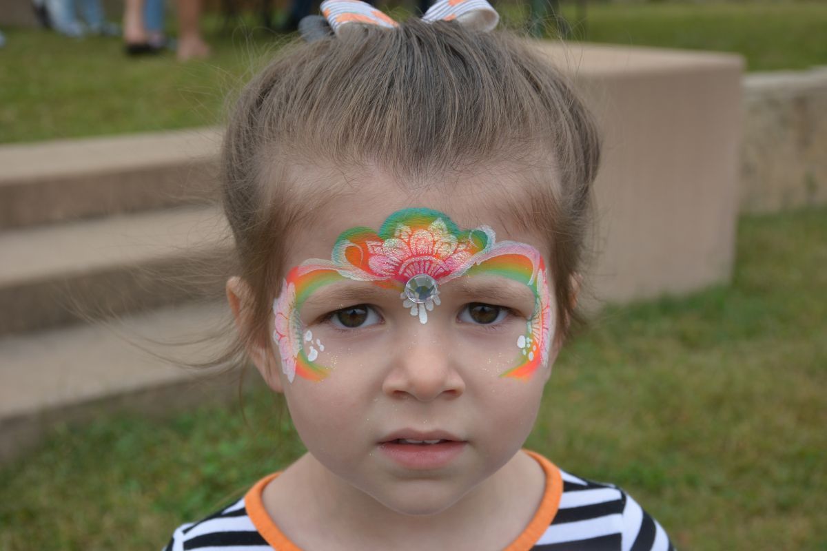 Kinder mit bemalten Gesichtern in der Kids Zone beim Clarksville Oktoberfest, 23. Oktober 2021. (Lee Erwin)