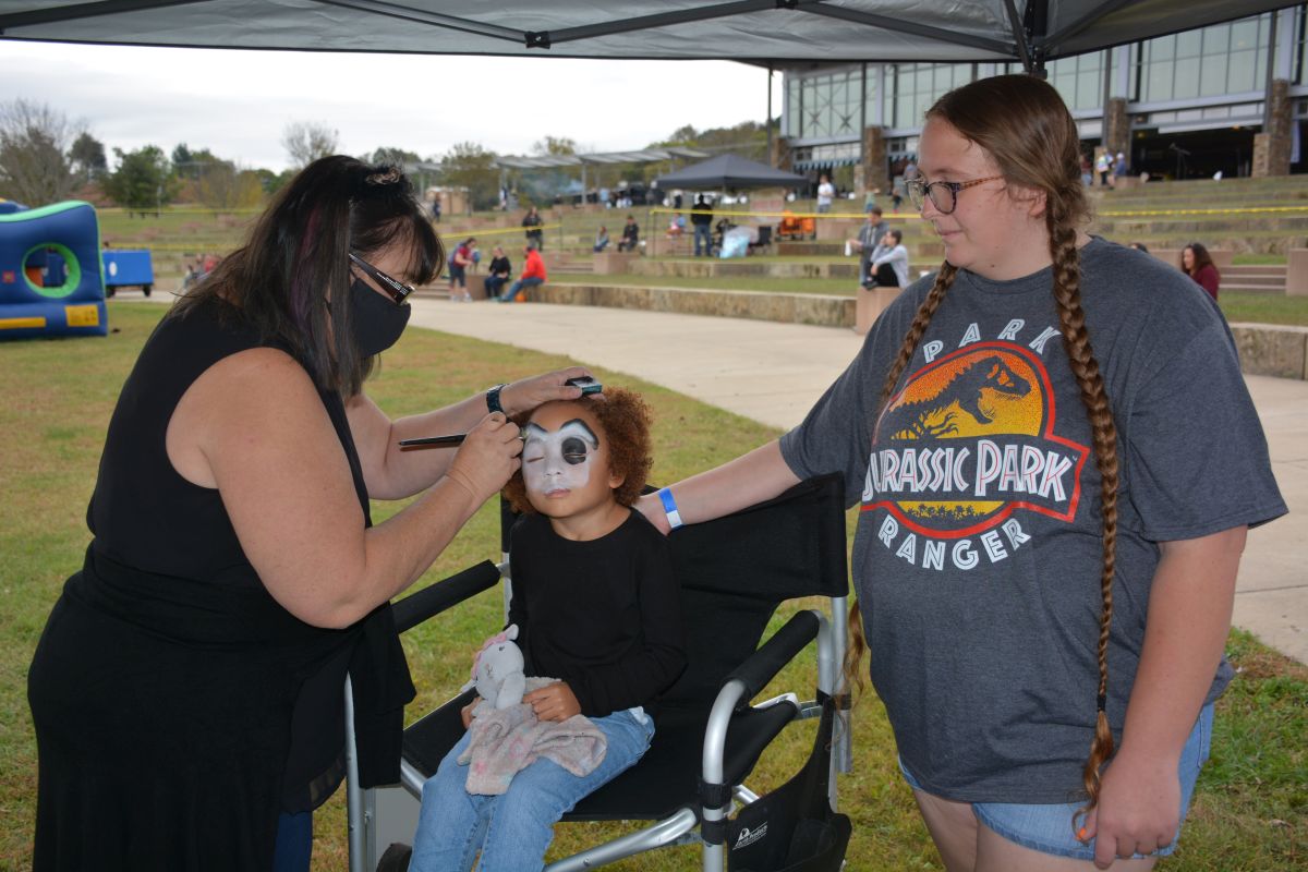 Okt. Am 23. 2021 malt sich eine Teenagerin in der Kids Zone auf dem Oktoberfest in Clarksville ihr Gesicht. (Lee Erwin)