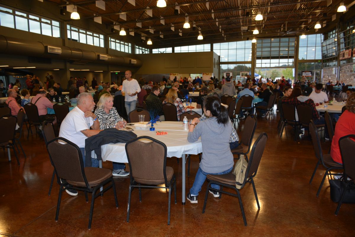 Die Freiwilligen von Camp Rainbow beaufsichtigen das Kochen und Servieren der Speisen für das Oktoberfest, darunter Schnitzel und Brad. Camp-Direktor Jeremy Miner sagte, es sei gut, dem BWC zu helfen und zusammenzuarbeiten, da sich die Organisation wie eine Familie anfühle.